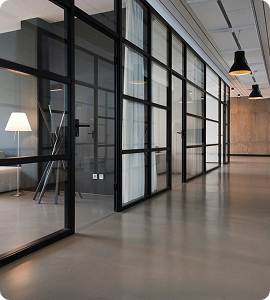 - Глухие окна из алюминия: Предназначены для витрин, обеспечивают простоту конструкции.